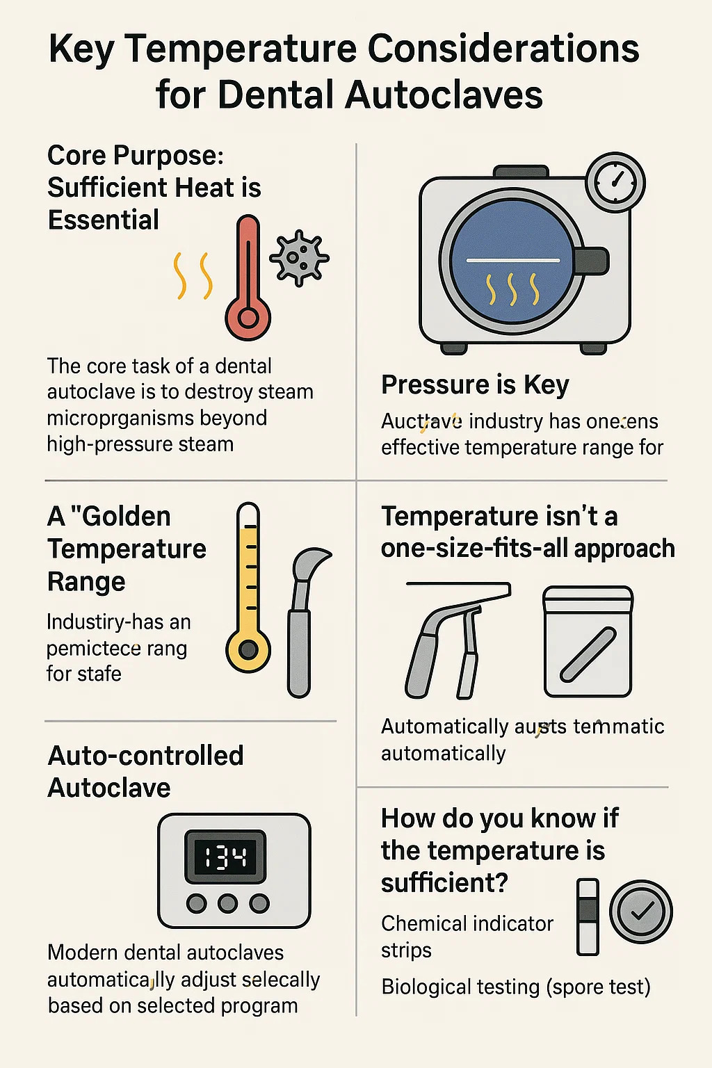Through long-term practice, the dental industry has identified a universally accepted and effective temperature range for sterilization.